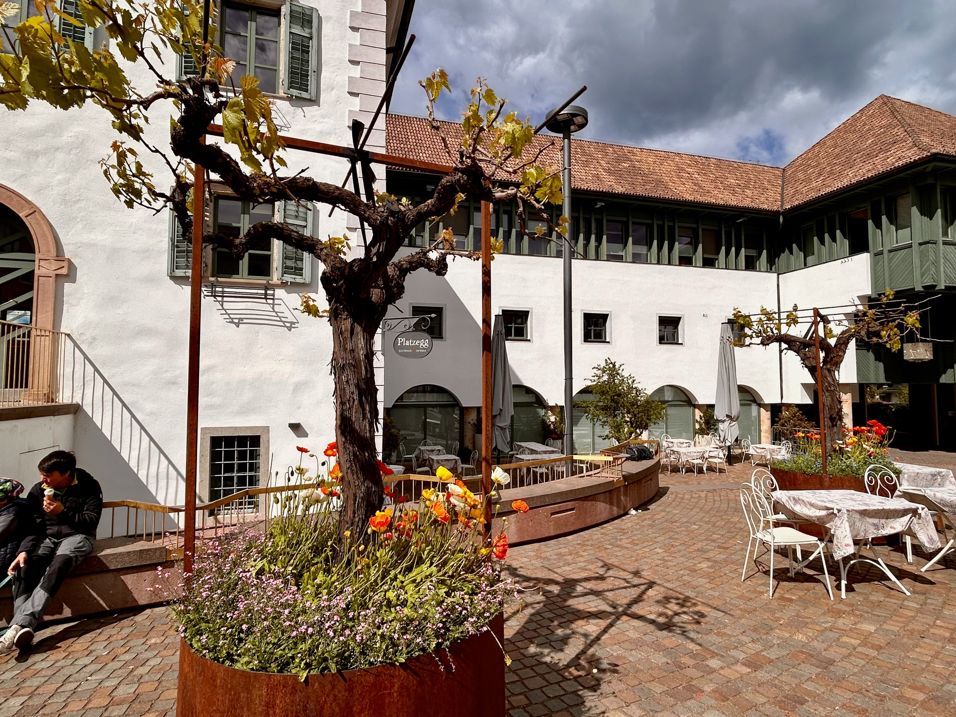 Das "Platzegg" am Marktplatz von St. Michael/ Eppan ist mehr als nur ein Zweithaus der "Rose" von Familie Herbert & Margot Hintner. Das Sternehaus "Rose" steuern Genussfreunde sicherlich für besondere Erlebnisse an, das "Platzegg" gegenüber ist eine schöne kulinarische Ergänzung, in der Südtiroler Klassiker und fast vergessene Gerichte aus der Region ohne Chi-Chi und Schnick-Schnack, sondern mit echtem handwerklichen Können durch Sternekoch Herbert Hintner wieder restaurantfein werden. Die hervorragende Weinauswahl hat einen klaren Fokus auf die benachbarten Weingüter in Eppan, umfasst aber zudem auch die gesamte Breite der Südtiroler Weinvielfalt. Nicht nur das historische Gemäuer des Ansitzes lädt Genussfreunde und Weinkenner ein, sondern bei gutem Wetter auch die herrliche Terrasse direkt auf dem Marktplatz.