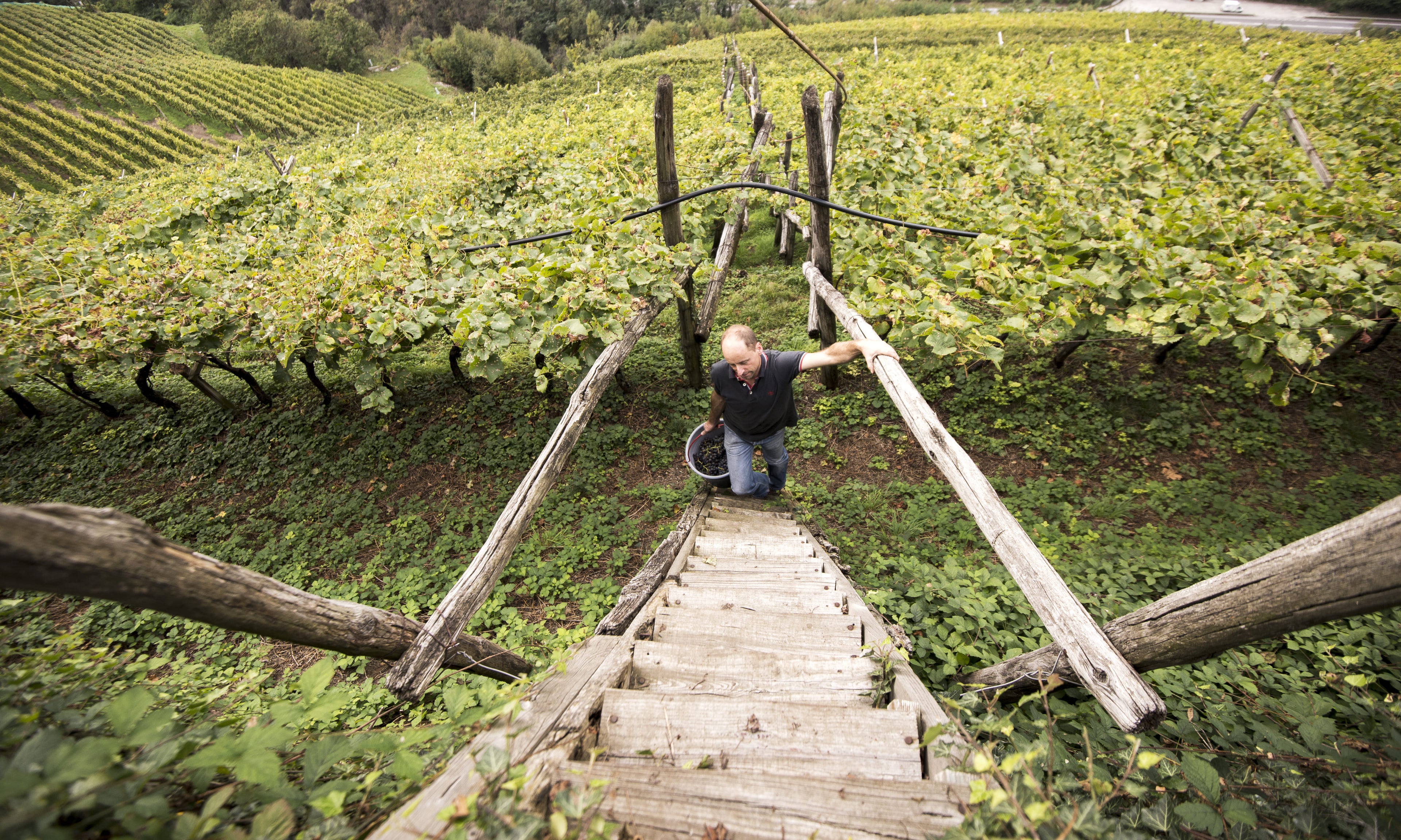 Der Gump Hof liegt in Völs am Schlern, im südlichen Eisacktal. An steilen Hängen bewirtschaftet Markus Prackwieser gut fünf Hektar Weinberge auf 350 – 500 Höhenmeter.