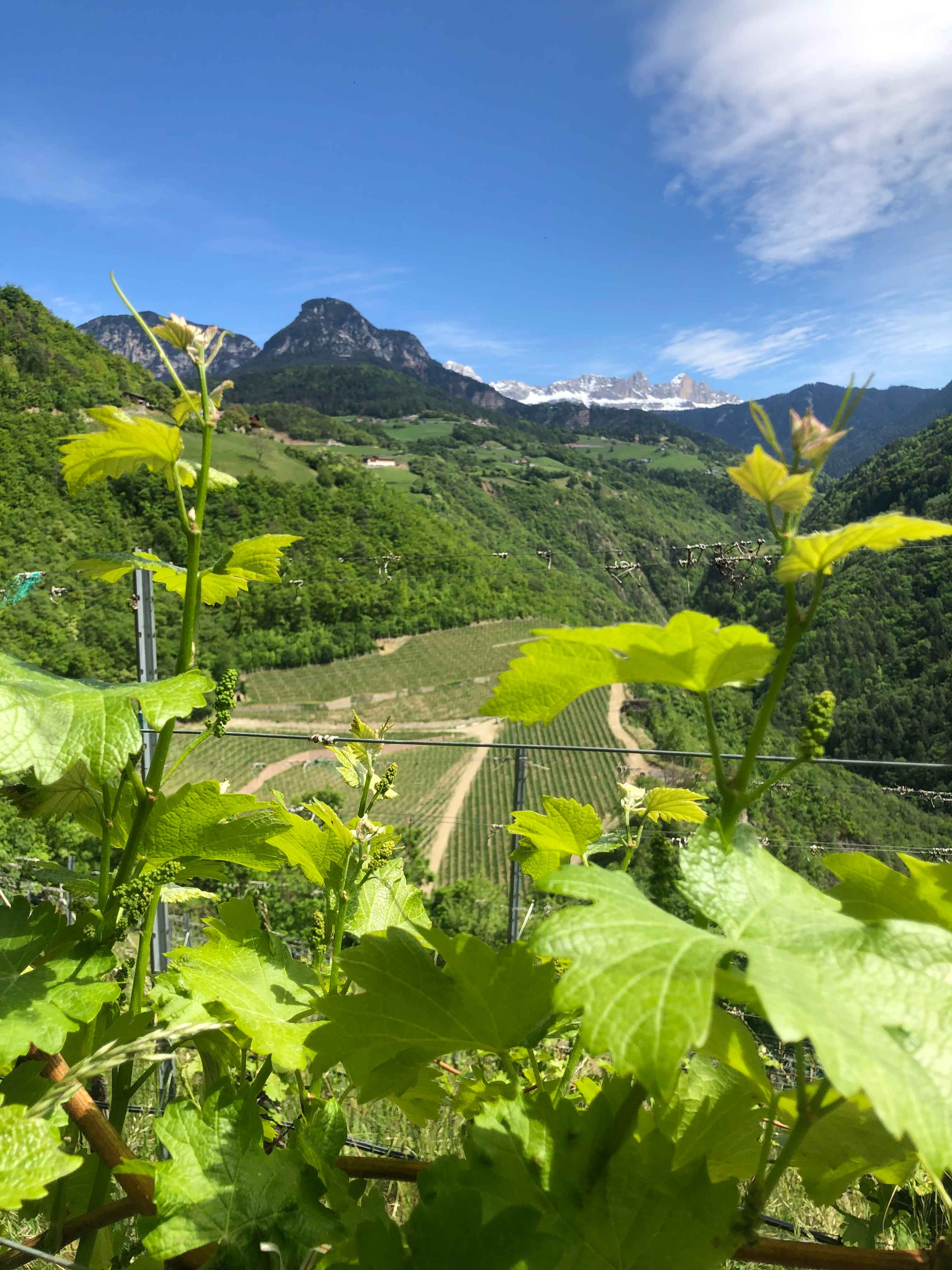 Die imposanten und oft beschneiten Berggipfel ermöglichen kühle Nächte nach sehr warmen Tagen. Diese Temperaturunterschiede, zusammen mit dem Moränenboden über dem vulkanischen Bozner Quarzporphyr-Sockel, stellen die besten Voraussetzungen für einen hochqualitativen Weinbau dar, der schon seit Generationen am Prackfolerhof praktiziert wird.